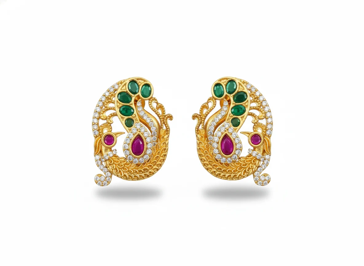 Because these have such a beautiful matte texture, they look incredible with “earthy” fabrics. Pair them with a handloom cotton saree or a raw silk kurta. They also work perfectly as a statement piece for a bridesmaid look—just keep your neck bare to let the intricate peacock detail really shine.