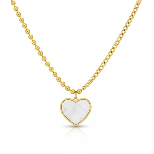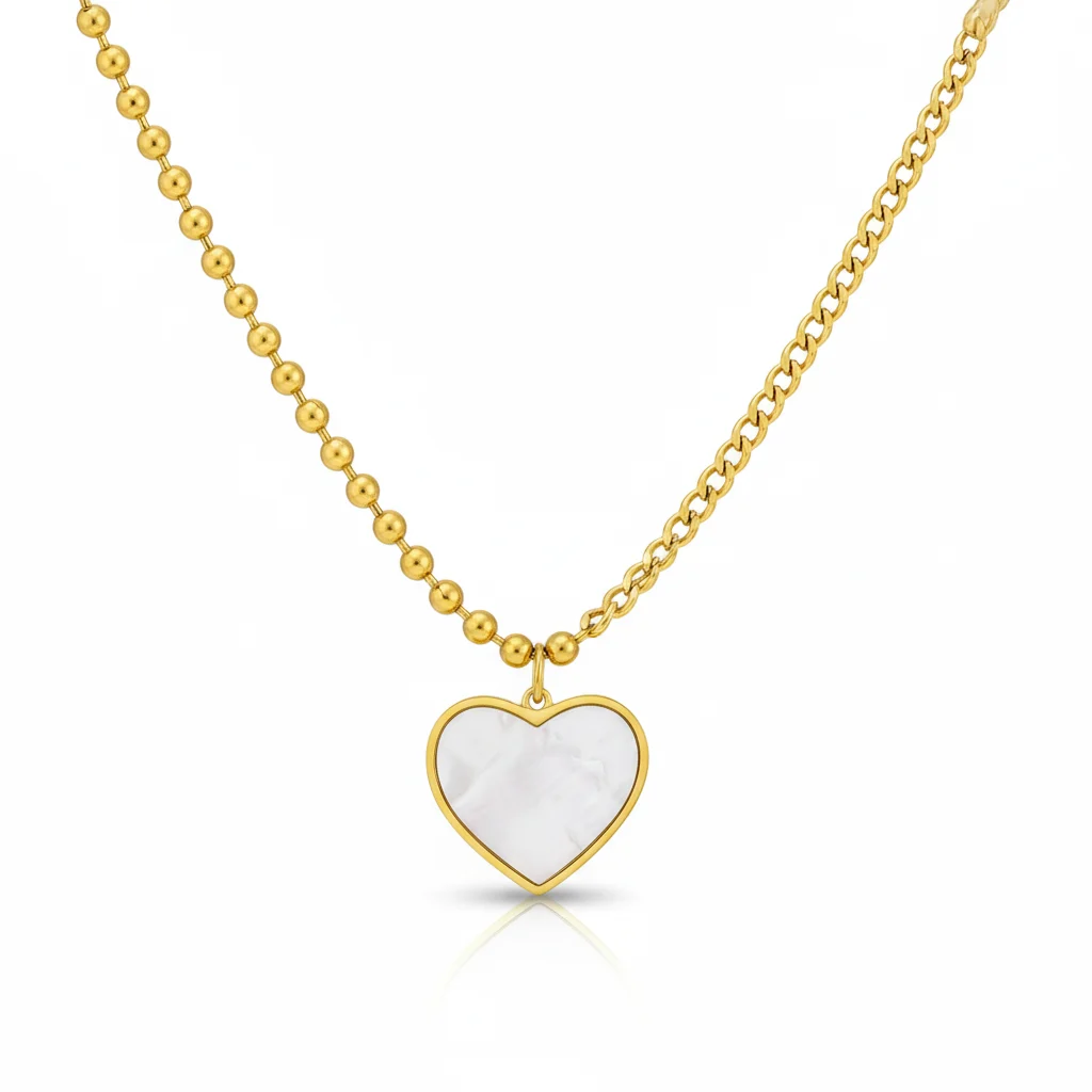 A timeless white shell heart on a unique half-beaded, half-link chain. Waterproof, anti-tarnish, and finished in premium 18k Gold PVD for a perfect everyday statement.